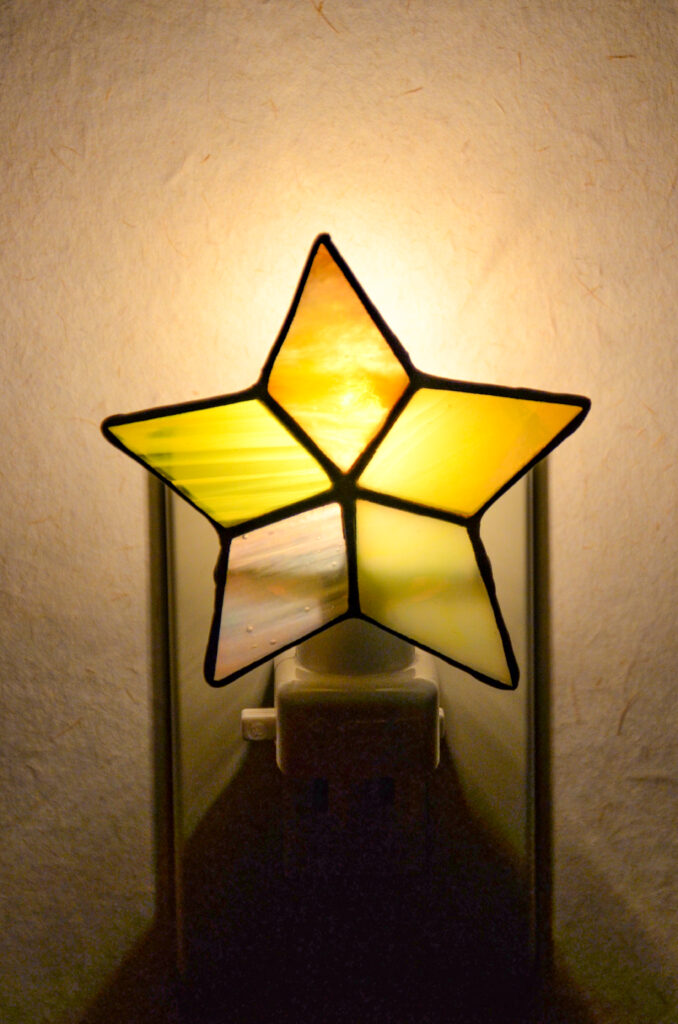 今回制作する星モチーフのフットライトは柄・種類の違うイエローガラスを組み合わせたデザイン。シンプルなデザインなので、クリスマスはもちろん通年お使い頂けます。